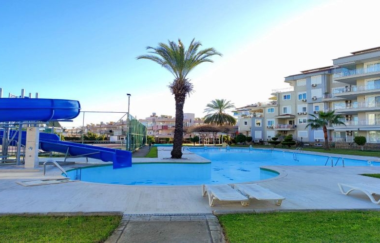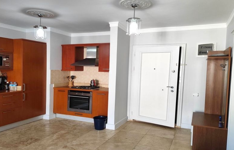 1-bedroom open plan kitchen big size Apartment For sale Oba in Famous Complex Helios. The complex consists of 4 blocks and has a big land of 11374 sqm. Close to all amenities, Metro Shopping Center walking distance 900 m, Famous Alanyum Shopping Center 350 m, Beach is 900 m.