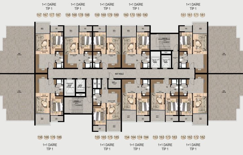 - The Bathrooms will have Shower Cabins ,Hilton Sink,Ceramic Coatings and Armatures İncluding the Walls