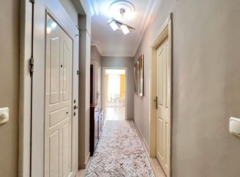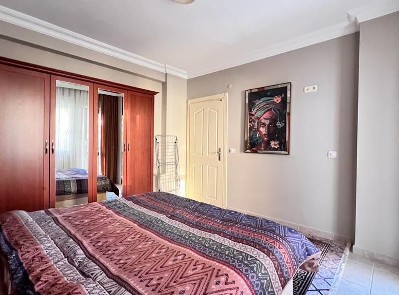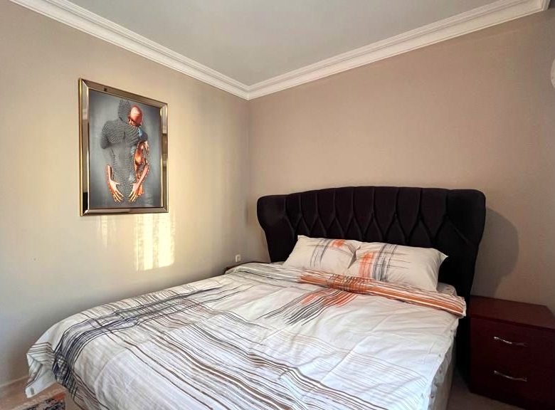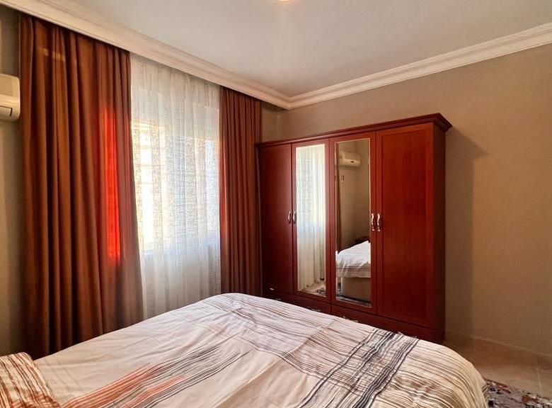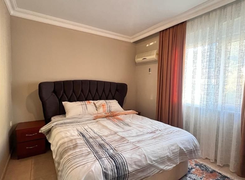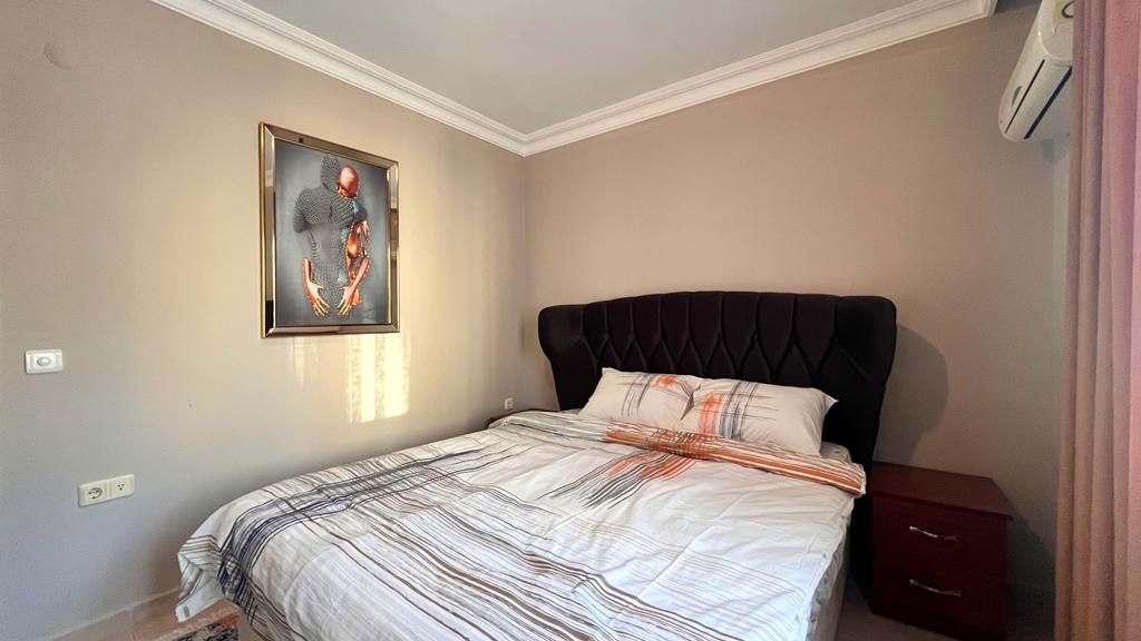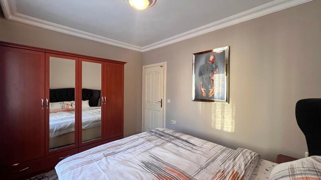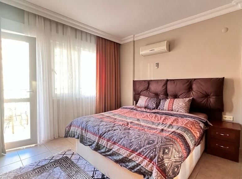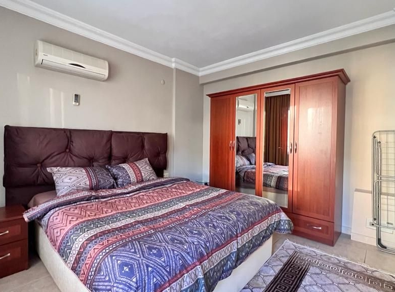 The apartment comes fully furnished with high-quality fixtures and contemporary décor—furthermore, air conditioning throughout guarantees year-round comfort in Alanya’s Mediterranean climate. Additionally, built-in wardrobes maximize storage space in both bedrooms.