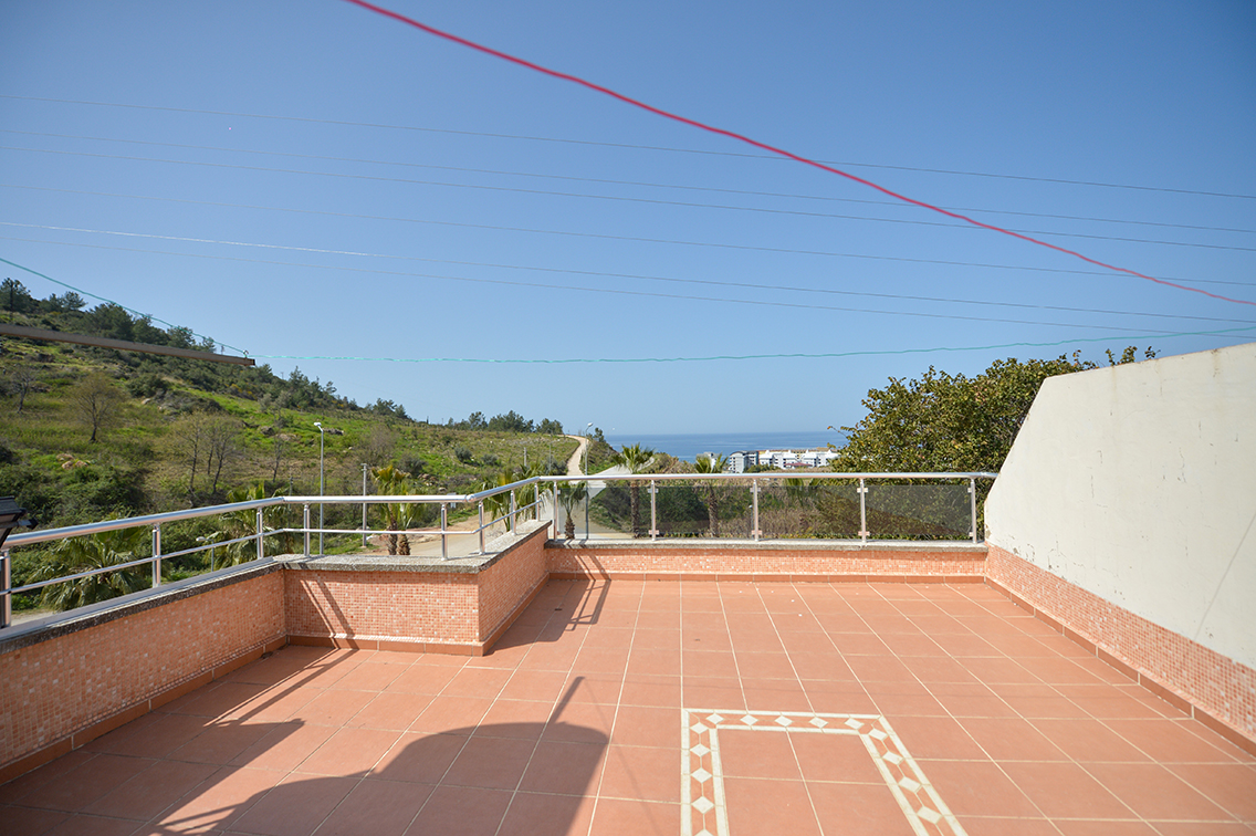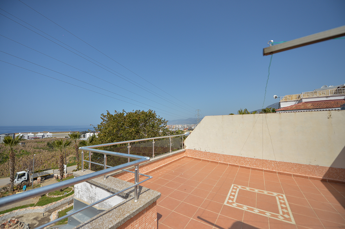 Our villa located in Alanya Kargicak has a communal swimming pool within the site. It is 140 m2 in size, consists of 3 bedrooms and a living room with an American kitchen. In addition, it has 2 balconies and 1 large terrace. There are 2 bathrooms and 2 WCs. It is close to the shopping center and the beach. Our villa, which has a unique sea view, offers a quiet life option away from the noise of the city.
