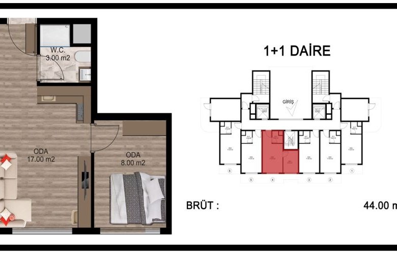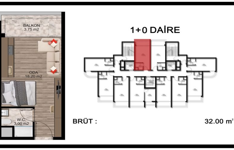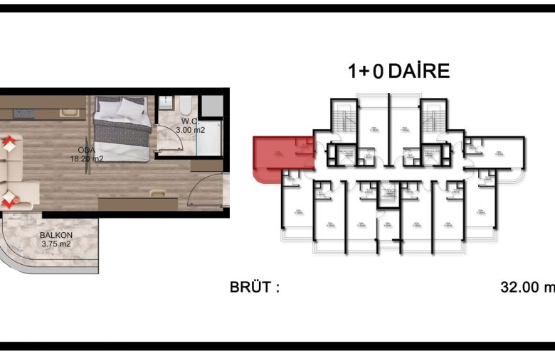 - 1+0 : 32 M2 BRÜT