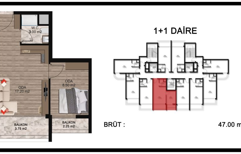 - 1+1 : 47 M2 BRÜT