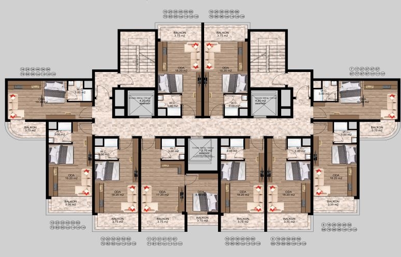 - Flat Entrance and Wet Floors will be Ceramic (Bathrooms Balconıes)