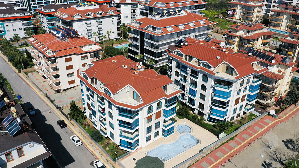Of Kale Sitesi It located in the popular district of Alanya – Kestel, walking distance to the sea. It is located just 3 km from the center of Alanya and 35 km from Alanya Gazipasa airport and 100m from the sea. Modern residential complex consists of 2 blocks of 4 floors.