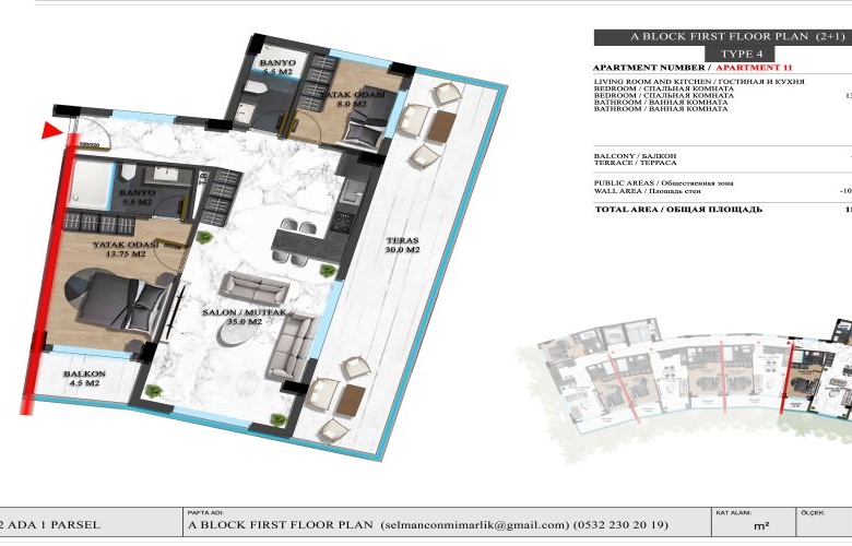 - 3+1, 4+1 Apartments = %20 cash payment + 48 months installment